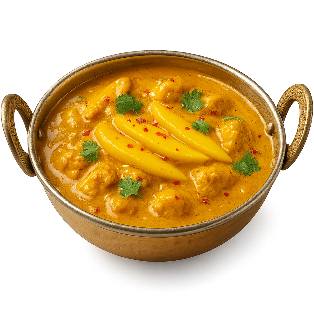 Tender chicken cooked in a rich, creamy mango sauce with aromatic spices and fresh herbs.