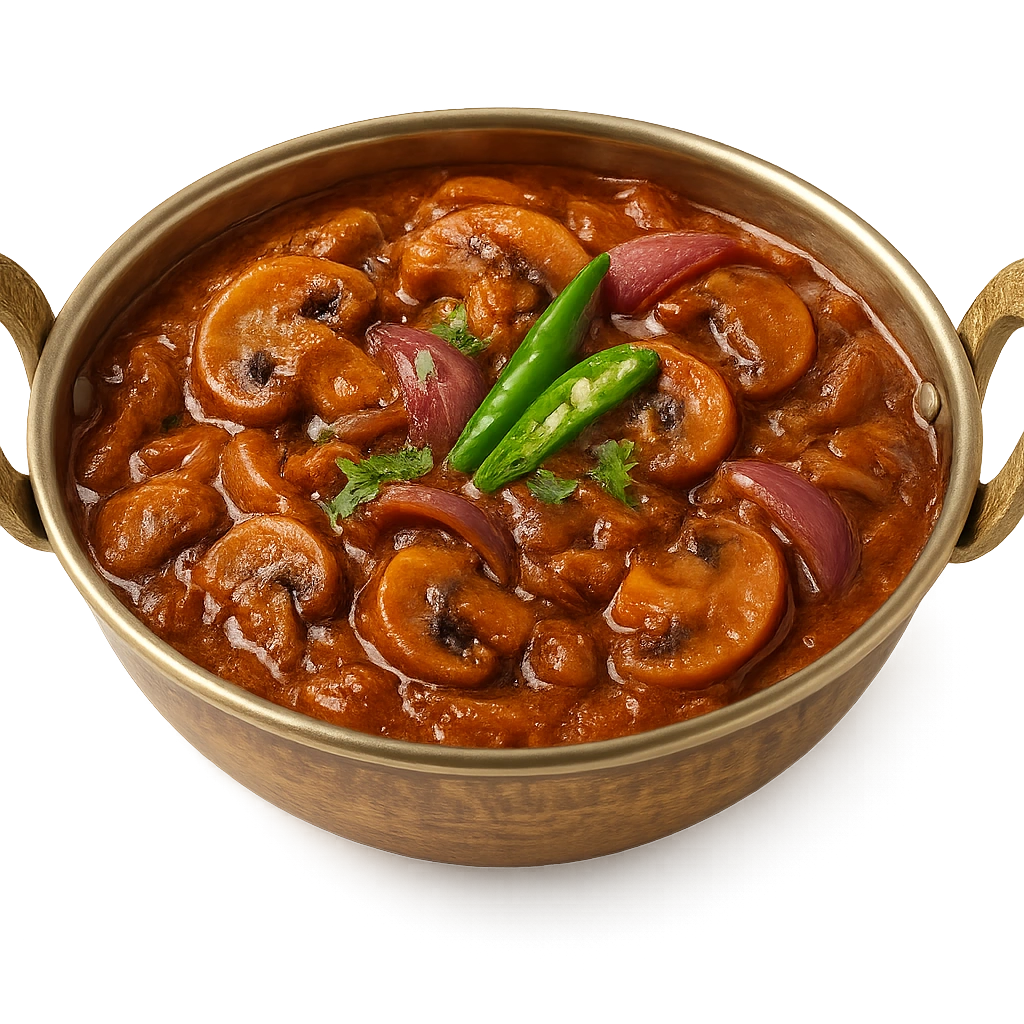 Tender mushrooms cooked with sautéed onions and aromatic spices for a flavorful vegetarian delight.