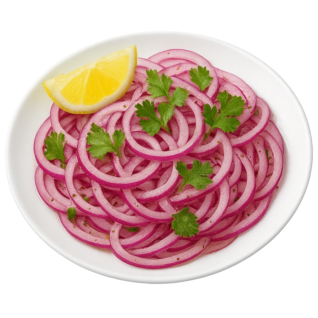 Freshly sliced onions tossed with tangy lemon juice, herbs, and a hint of spice for a zesty crunch.
