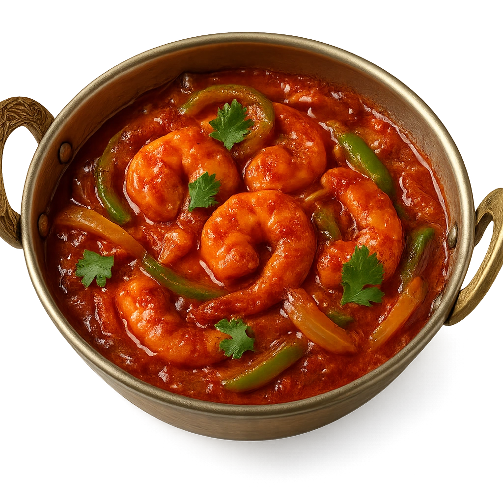 Succulent prawns cooked in a rich, aromatic tomato and spice blend with herbs and cream.