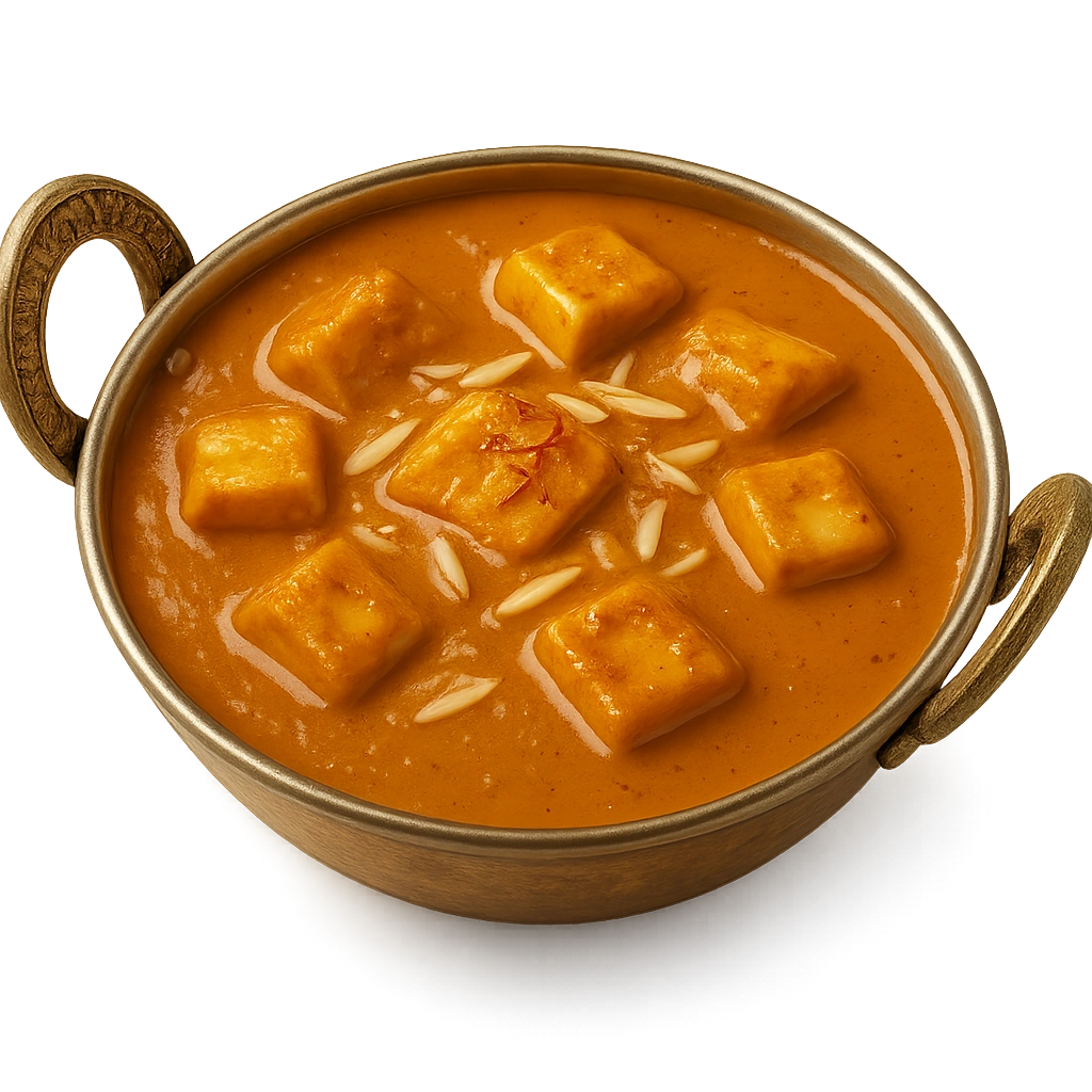 Rich and creamy paneer cubes cooked in a flavorful aromatic tomato and cashew gravy.