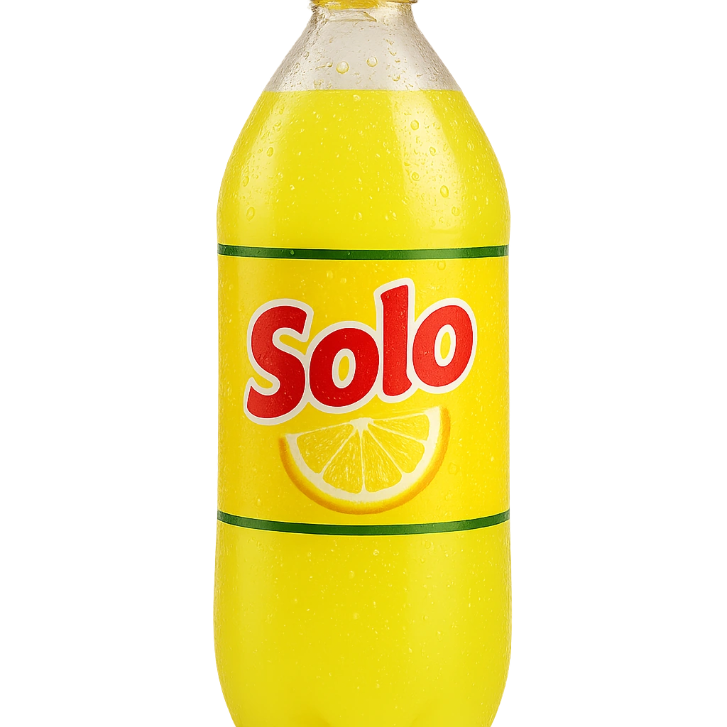 Chilled 1.5-liter Solo soft drink bottle for a refreshing, citrus-flavored burst anytime.