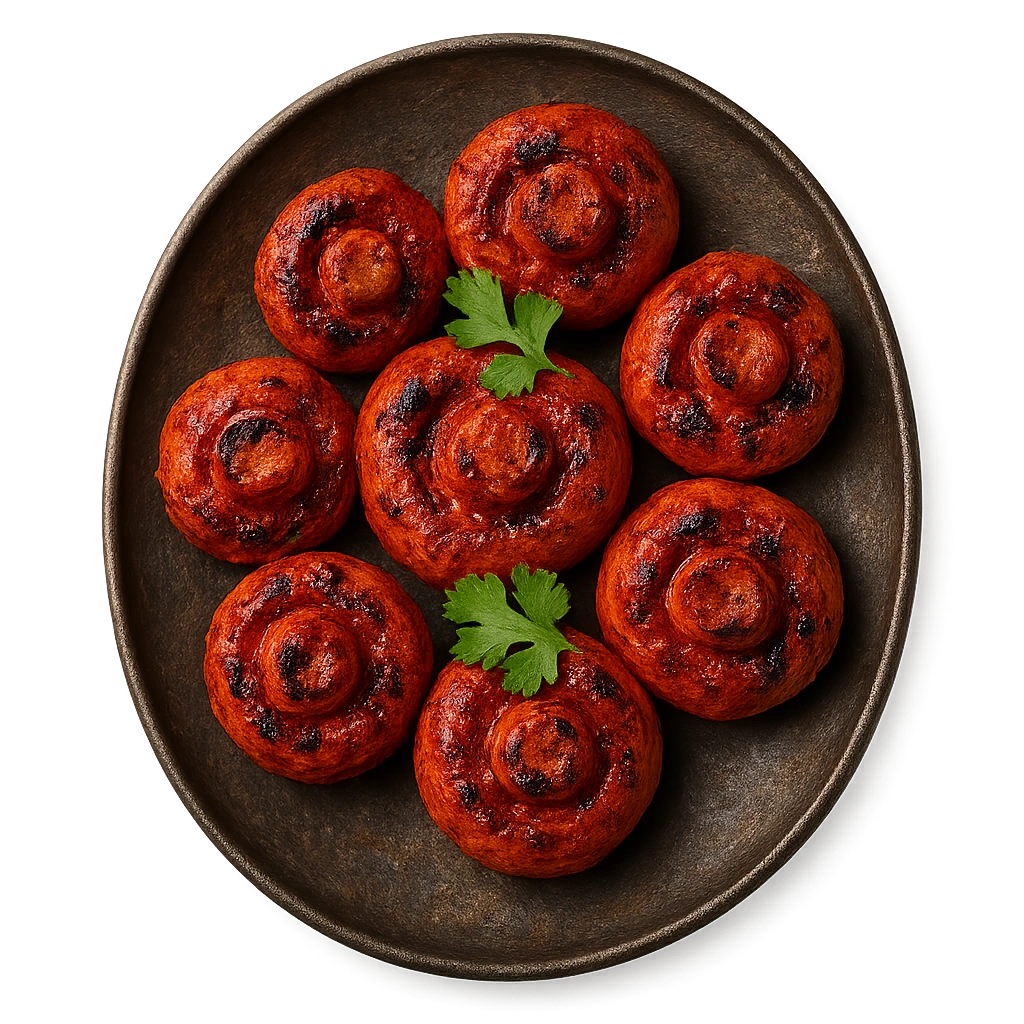 Spiced mushrooms marinated in yogurt and tandoori spices, grilled to smoky perfection.